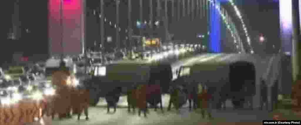 Түркиянын бийлиги Европа менен Азияны бириктирип турган Босфор көпүрөсүн жаап салды. Түркиянын борбору Анкаранын үстүндө аскердик учактар учуп жүргөнүн Reuters маалымат агенттиги кабарлады.