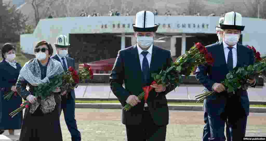 Президент Садыр Жапаров баштаган топ апрель окуяларынын курмандыктарын эскерүү үчүн "Ата-Бейитке" барды.