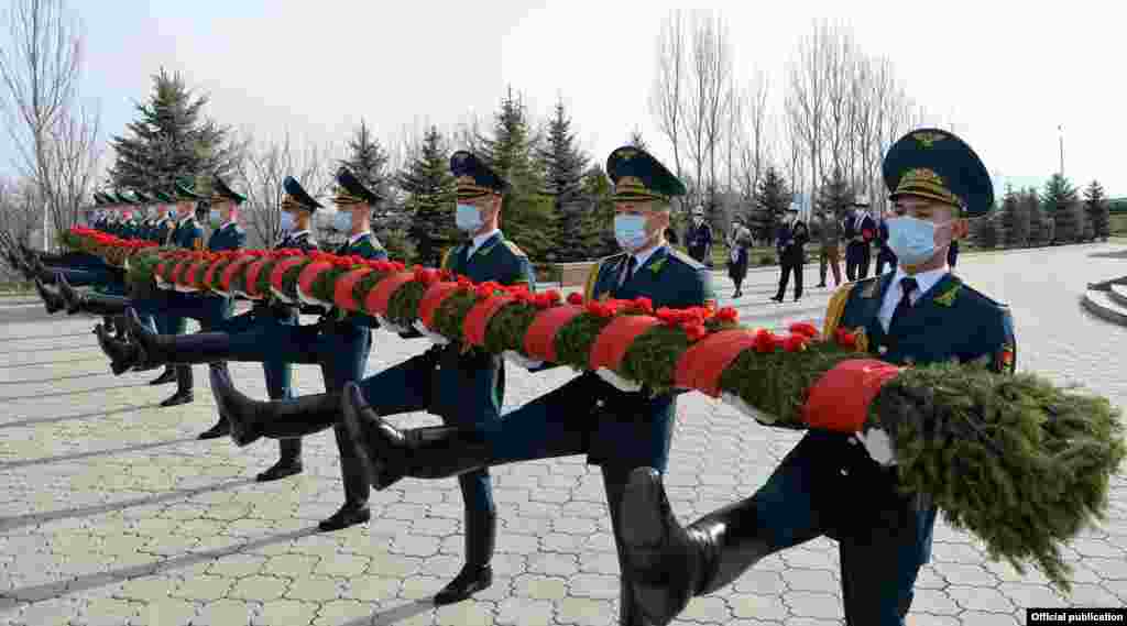 Апрель ыңкылабынын 11 жылдыгына карата бүгүн, 7-апрелде Бишкектин четиндеги «Ата-Бейит» мемориалдык комплексинде президент Садыр Жапаров катышкан эскерүү иш-чарасы жабык өттү.