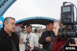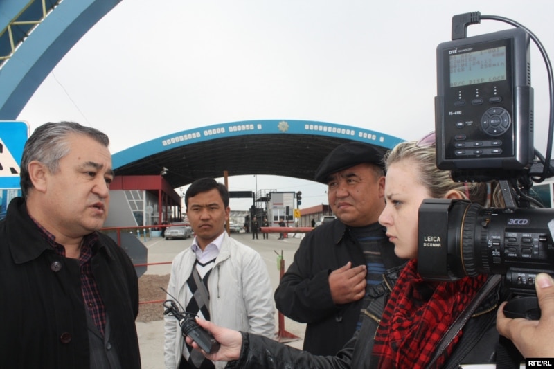Өмүрбек Текебаев кыргыз-казак чегиндеги "Ак жол" бекетинде журналисттердин суроолоруна жооп берүүдө, 2010-жылдын 25-марты.