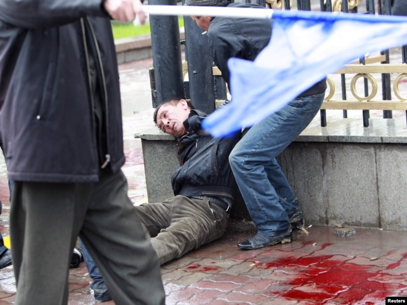 7-апрель күнү бардыгы болуп 77 адамдын өкмөт үйүнүн айланасында окко учкандыгы аныкталган. Алардын ичинен 26сы башына, 32си көкүрөгүнө, 9 адам курсагына жана дагы 10 адам жамбашына алган жарааттардын натыйжасында кийинчерээк мерт болгон. Мындан сырткары 306 адам ок атуучу куралдан жарадар болушкан. Мамлекеттик айыптоо көзгө атарлар Акүйдүн үстүндө, түштүк-чыгыш жана түштүк-батыш тарабында жайгашып алып, куралсыз адамдарды мээлеп атышкандыгын белгиледи. Мындан сырткары аларга элге каршы саясат жүргүзгөн бийликти аягына чейин коргогон деген айып койулду.