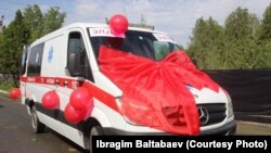 Бүгүн, 29-июль күнү Кызыл-Кыя шаардык ооруканасына Кыргызстандын ар кайсы аймагындагы демөөрчүлөр "Тез жардам" автоунаасын сатып берди. Бул иш-чаранын демилгечиси шаар тургуну, жеке ишкер Ибрагим Балтабаев. Ал өзү да коронавирустан айыгып, ооруканага жардам берүү максатында өзүнө окшогон ишкерлерди жардамга чакырып демилге көтөргөнүн "Азаттыкка" айтып берген.