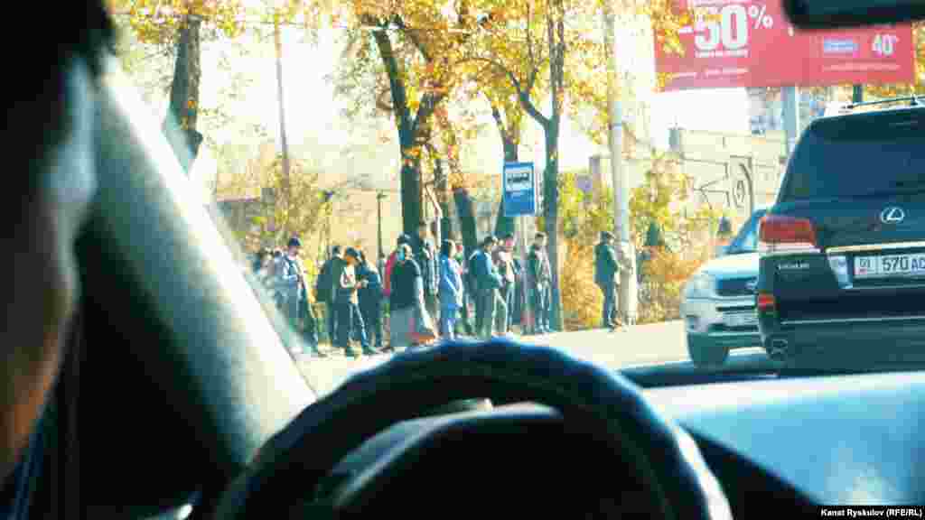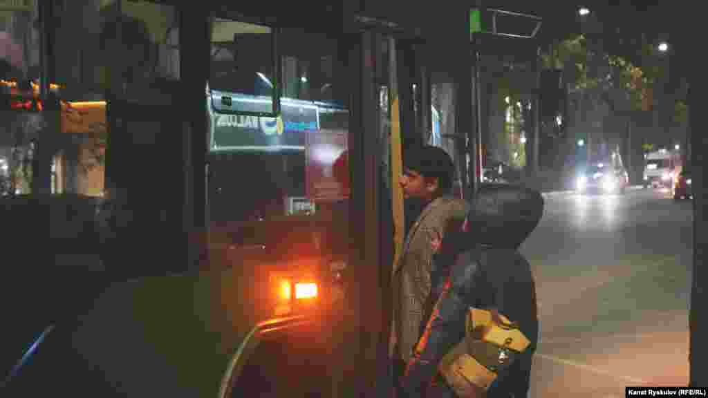 Кечинде ар бир аялдамада ондогон киши тизилип коомдук транспорт күтүп турганын көрүүгө болот.