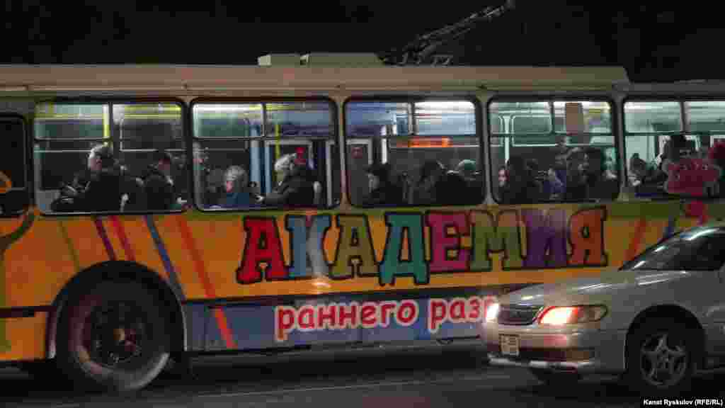 Кечке маал студенттер жана мектеп окуучулары сабактан чыкканда маршруттук автоунаалардын эшиги жабылбай калгыча толуп калат.