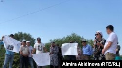 "Ихсан" кооперативине нааразы болуп чогулгандар. Апрель, 2022-жыл. Жетекчиси Адинай Бекмурзаева (ак кийимчен, ортодо).