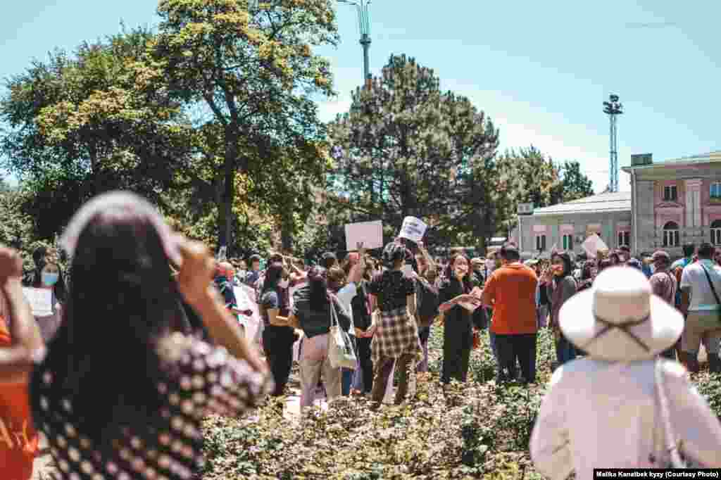 Акциянын уюштуруучулары, модераторлор пандемияга байланыштуу социалдык аралыкты сактоого үндөштү. Келгендердин баары беткап тагынышкан. Тынч жүрүшкө милиция көз салды.