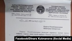 Мамлекеттик комиссиянын колуна өкмөттүн ошол токтомунун аткарылышы боюнча Айлана-чөйрөнү коргоо жана токой чарбасы агенттигинин ошол учурдагы статс-катчысы (2009) Абдымитал Чынгожоевдин колу коюлган кызматтык кат кокусунан тийип калган.  2009-жылдын 9-сентябры менен катталган бул кызматтык катта «өкмөттүн №336-токтомун аткаруу максатында «Сары-Чат - Ээр-Таш» мамлекеттик коругунун түштүк чек арасына өзгөртүүлөр киргизилип, анын 4380 гектар жер аянты «Кумтөр Оперейтинг компани» ишканасына жаратылыш байлыгын иштетиш үчүн өткөрүлүп берилгени» көрсөтүлгөн.