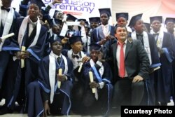 Олчинбек Рахманов Нигериянын эң мыкты деп тандалган окуучулары менен. Нигерия, 2015-жыл.