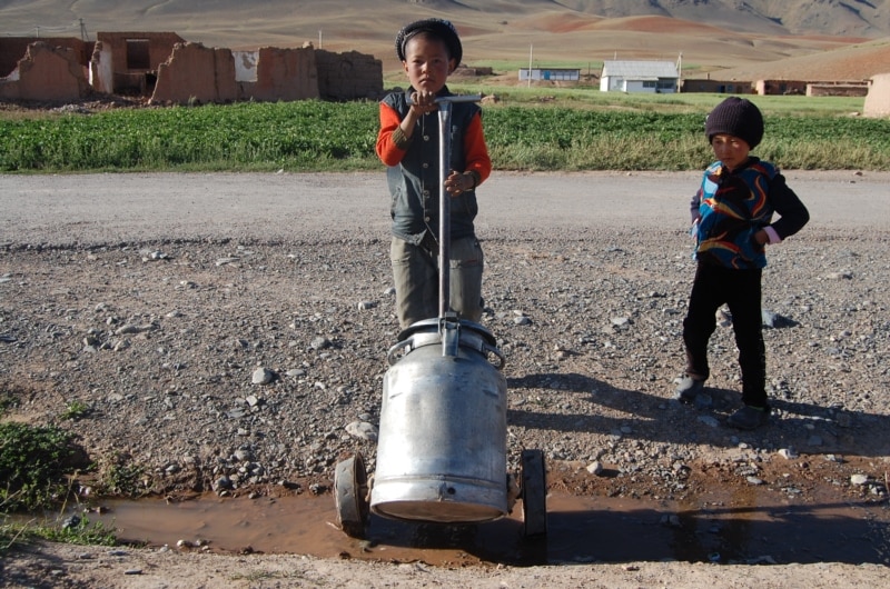 11 жаштагы Изаттилла Элчибек уулу күнүгө 2 кичинекей үкөсүн ээрчитип алып суу ташыйт. Айылдын бир башынан экинчи башына 40 литрлик фляга суу ташуу ал үчүн оор деле болбой калган. Азыр да көп кыйын эмес, айрыкча кышкысын “суу ташыш керек” дегенде жүрөгү зыркырайт: