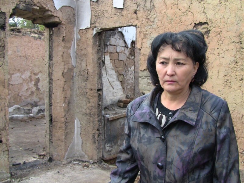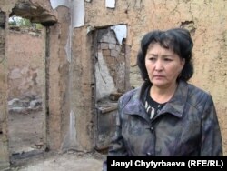 Жалалабаддык ишкер Тажикан Кадырова былтыркы башаламандыктарда өрттөлгөн ишканаларын кайра калыбына келтире албай кыйналууда.
