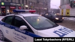 Кыргызстандык айдоочуну МАИ кызматкери текшерүүдө. Москва, январь