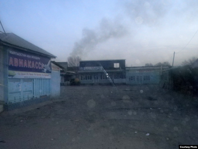 Ошол жерден үч машинаны, бир май куючу жайды, анын бир кафе, же дүкөндү өрттөп жиберишти. Мында да биз ошол жерден бир да ок аткан жокпуз. Тескерисинче бизге таш ыргытып аттышты. Ошондо облустук ички иштер башкармалгынын жетекчисинин орун басарына таш тийди. Чогулгандардын арасынан бирөө чыга калып, бычак менен коркутуп саям дегенде, ал бала шамдагайлык кылып буйтап, колун бурап ал жерден чыгып кетти.
