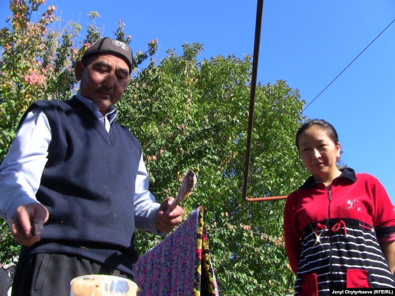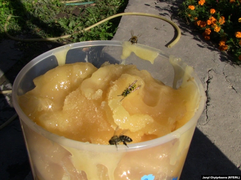 Курманкулов Бишкектин четиндеги жер тамдын короосунда бал өлчөп жатты. Ал балды эми чет өлкөгө сатсак, эмгегибиздин акыбети кайтат эле дегендей үмүттүү сүйлөдү: