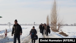 Кыргыз-өзбек чек арасынан өтүп келаткан жарандар.