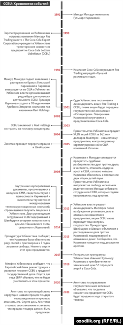 Мындан тышкары анда "20 жылдан бери уланып келаткан коррупциялык жараян биздин CCBUдагы 55% акциябызды мыйзамсыз тартып алуудан башталган, андан бери Өзбекстан өкмөтү CCBU акцияларын “менчиктештирип” эле келатат».