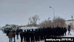 Өткөн түнү Мангистау облусунун административдик борбору Актау шаарында демонстранттарды полициянын курчоого алып турду. Адегенде, акциянын катышуучулары акимчиликке жанаша жайгашкан борбордук көчөлөрдүн бирин тосуп, көп өтпөй полиция аларды кайра аянтка сүрүп салган.