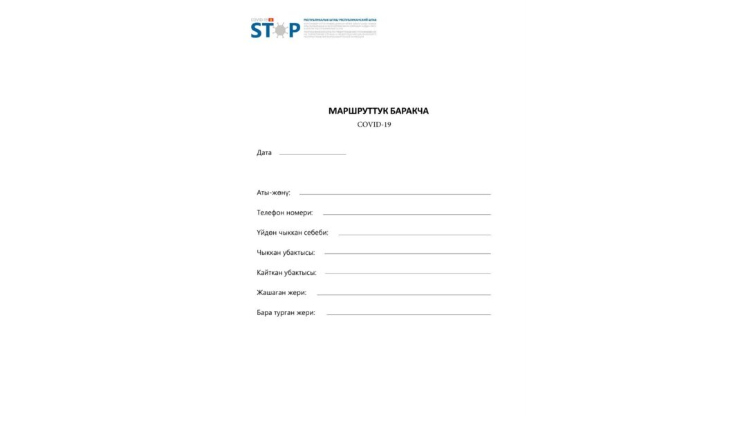 Жогорудагы себептер менен чыга турган болсоңуз жаныңызда маршруттук баракча жана тек-жайыңызды тастыктаган документ колуңузда болууга тийиш. Баракчада төмөнкү маалыматтар болушу керек.
